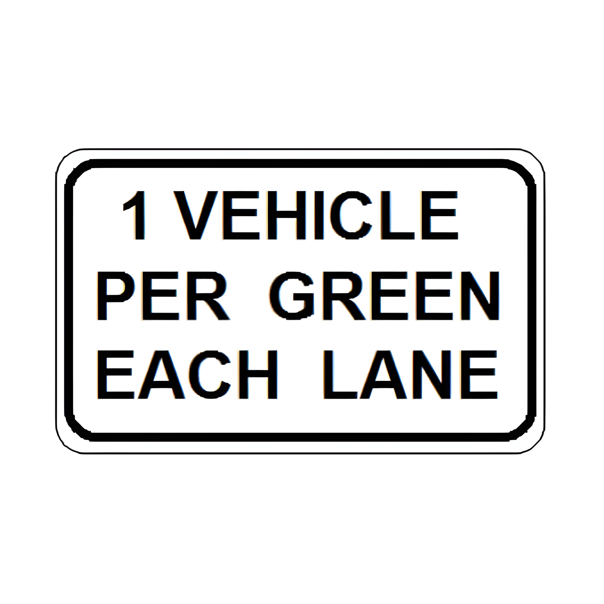 R10-29 1 VEHICLE PER GREEN EACH LANE. (Standard Reflective on .080 gauge aluminum).