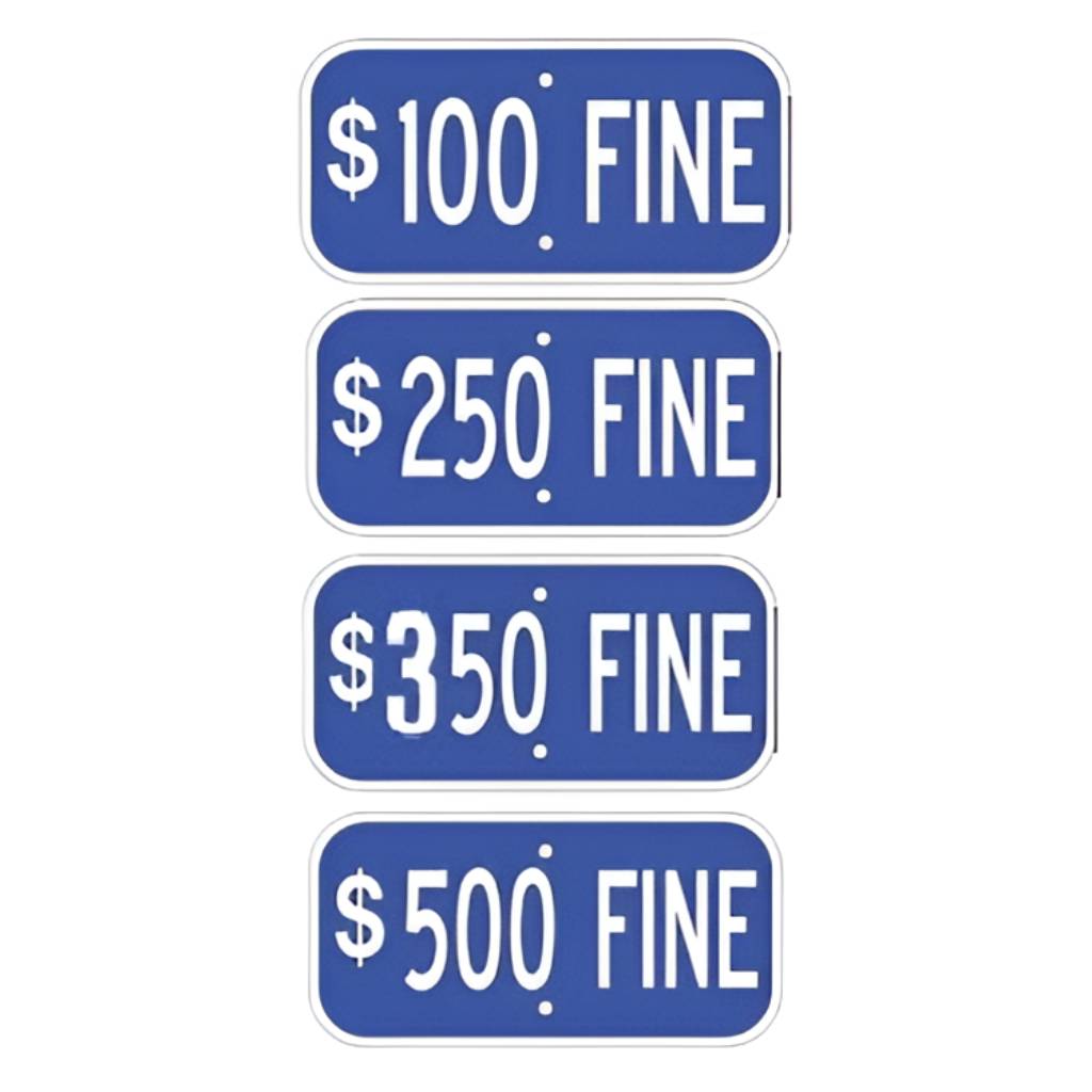 12×6-inch R7-8 Blue Handicap Supplemental FINE Plate. Enter any fine: Usually $100, $250, $350 or $500. (Standard Reflective on .080 gauge aluminum). Plates are mounted below handicap signs.