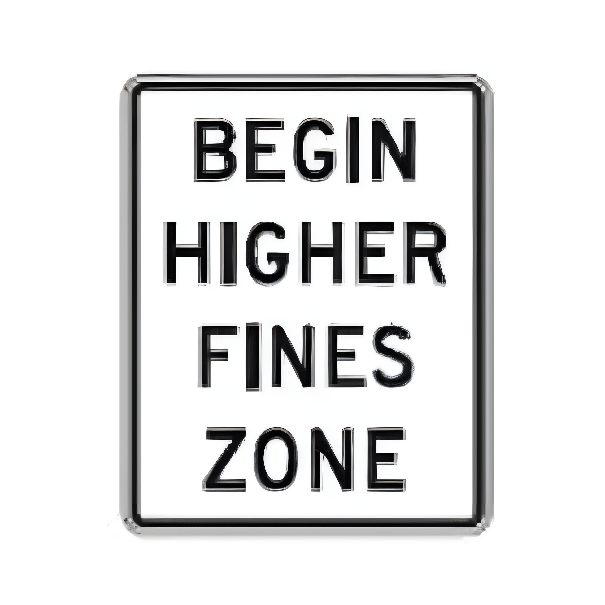 R2-10 BEGIN HIGHER FINES ZONE. (Standard Reflective on .080 gauge aluminum). Displayed below standard Speed Limit sign in advance of special zones.