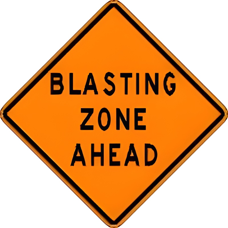 30-inch W22-1 BLASTING ZONE AHEAD (Standard Reflective on .080 gauge aluminum)