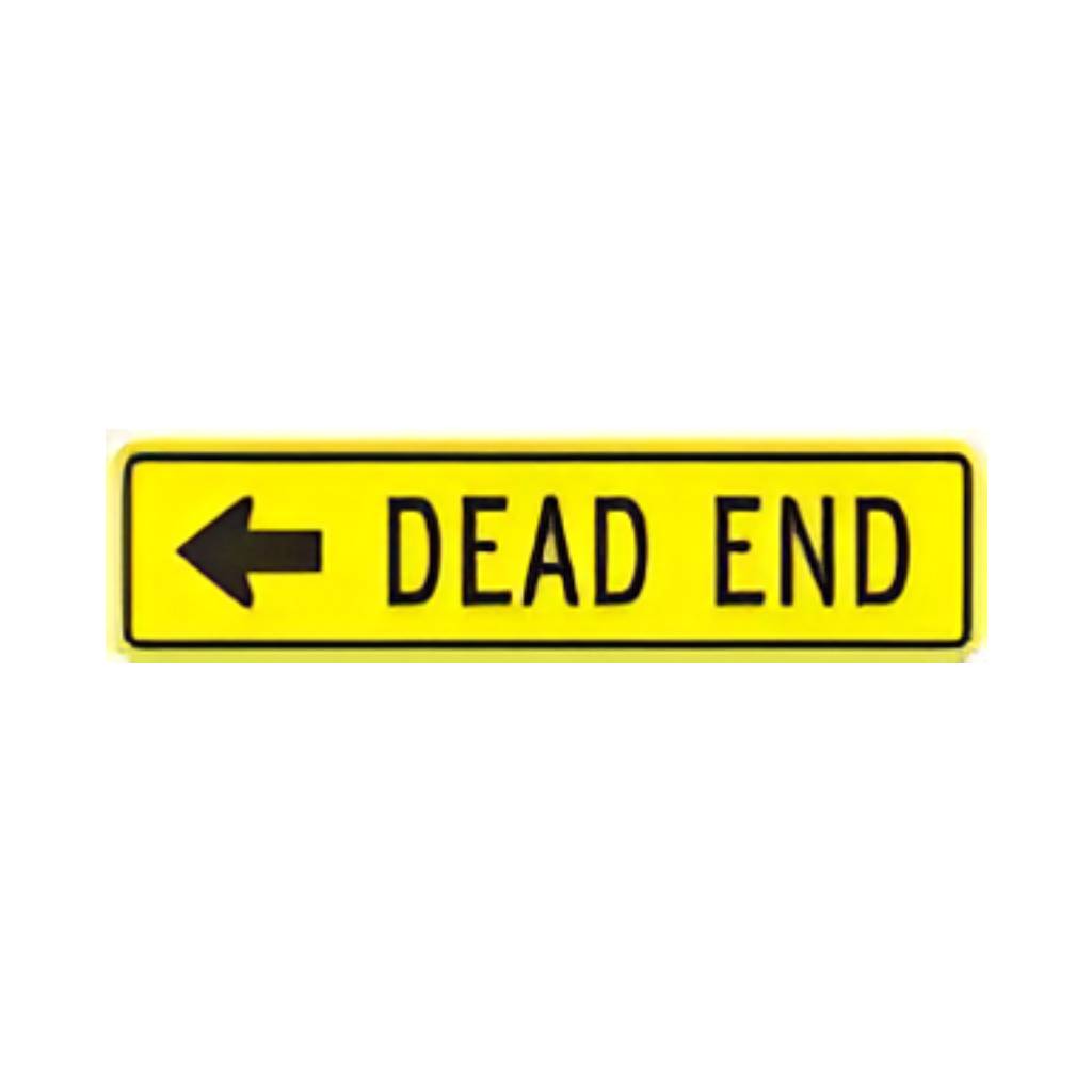 W14-1a DEAD END with Arrow. (Standard Reflective on .080 gauge aluminum). May be used in combination with Street Name signs to warn turning drivers that the street ends in the direction of the arrow.