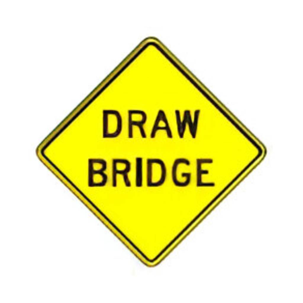 W3-6 DRAW BRIDGE. (Standard Reflective on .080 gauge aluminum). Should be used ahead of moveable bridge signals and gates, except in urban areas where it would be impractical.