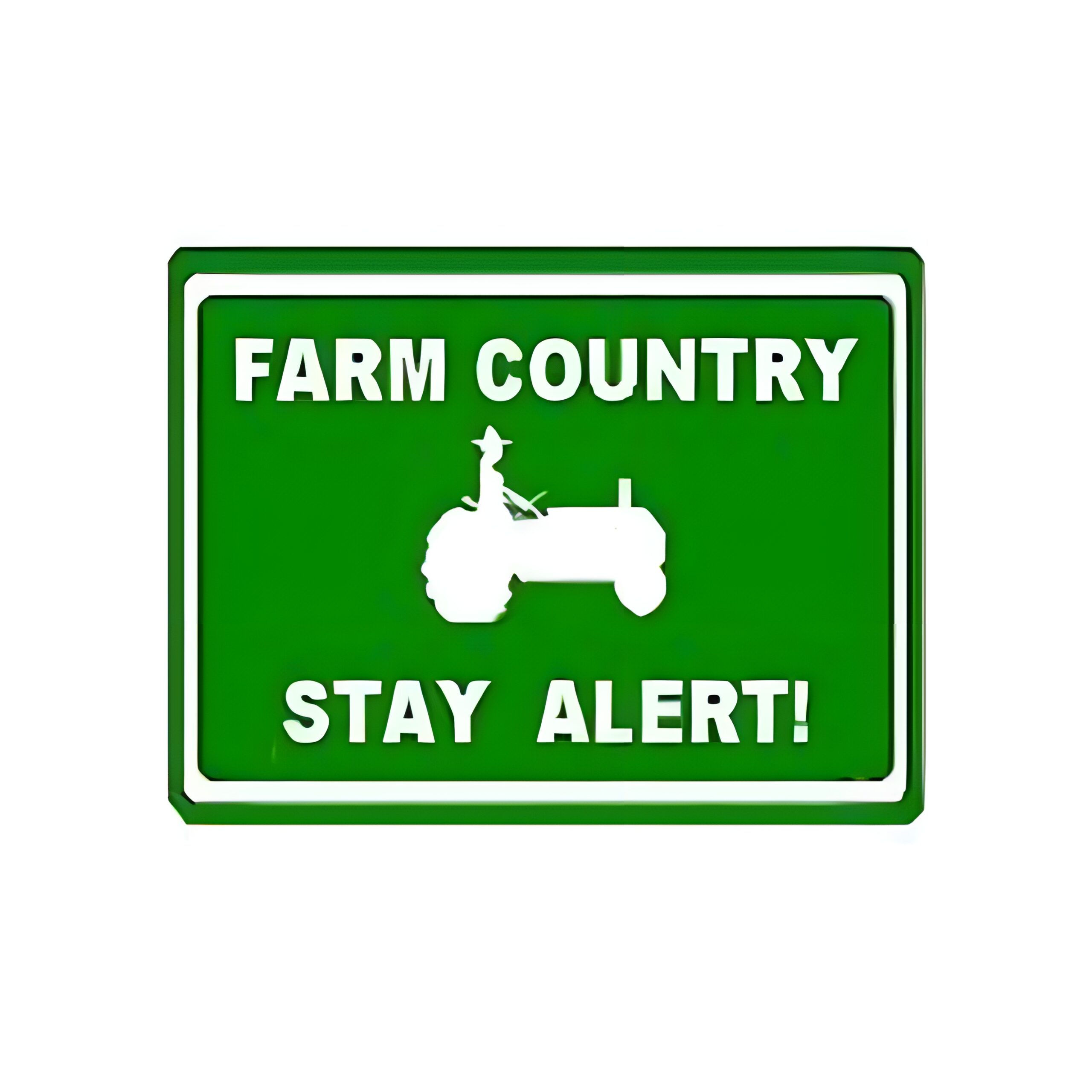 24×18-inch FARM COUNTRY (Tractor symbol) STAY ALERT! (Standard Reflective on .080 gauge aluminum)