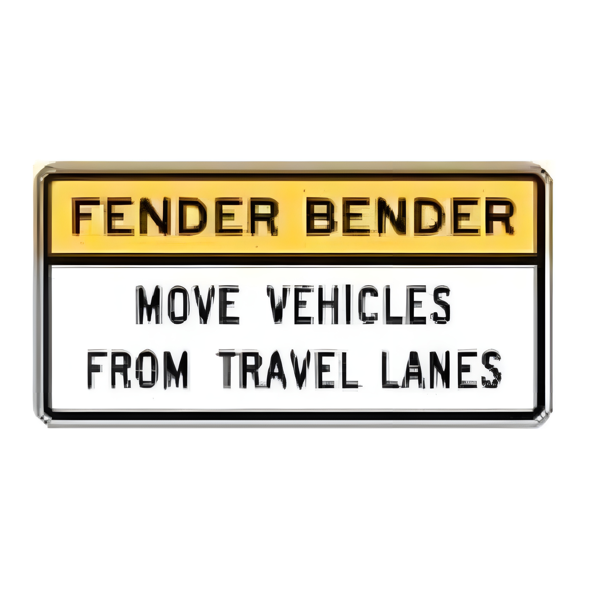 24×12-inch R16-4 FENDER BENDER MOVE VEHICLES FROM TRAVEL LANES. (Standard Reflective on .080 gauge aluminum). May be used to require motorists to move their vehicles out of travel lanes if they are involved in a crash.
