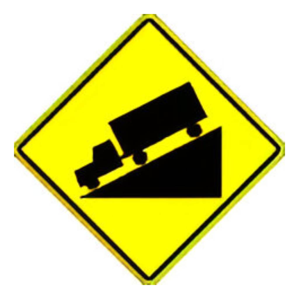 W7-1 Hill symbol. (Standard Reflective on .080 gauge aluminum). Should be used ahead of downhill roads that require special precaution.