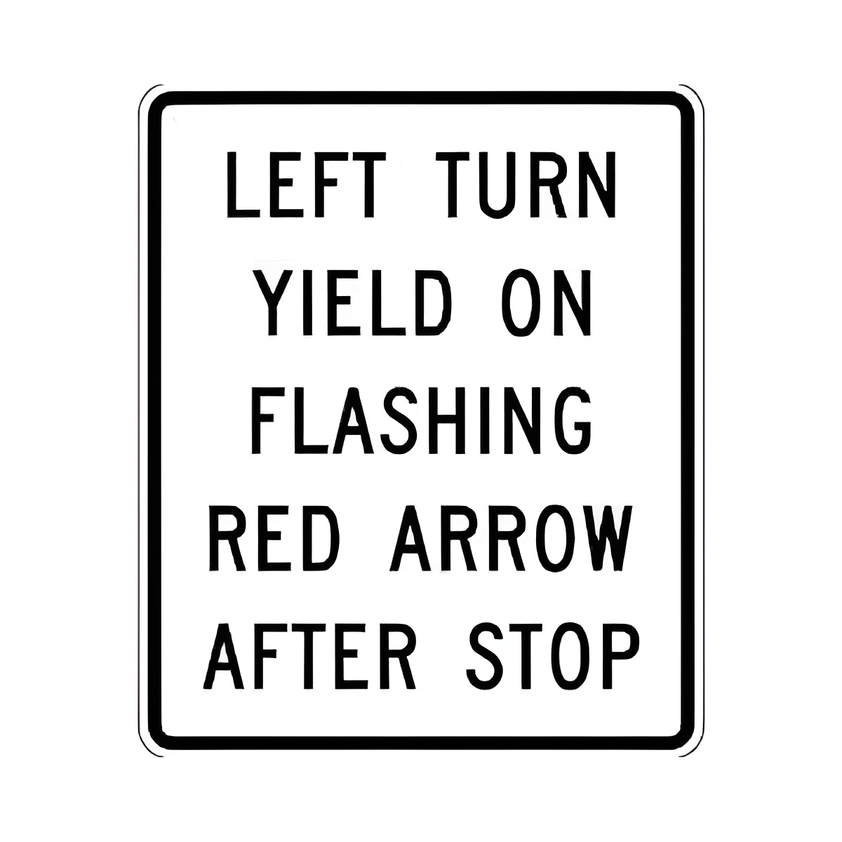R10-27 LEFT TURN YILD ON FLASHING RED ARROW AFTER STOP. (Standard Reflective on .080 gauge aluminum).