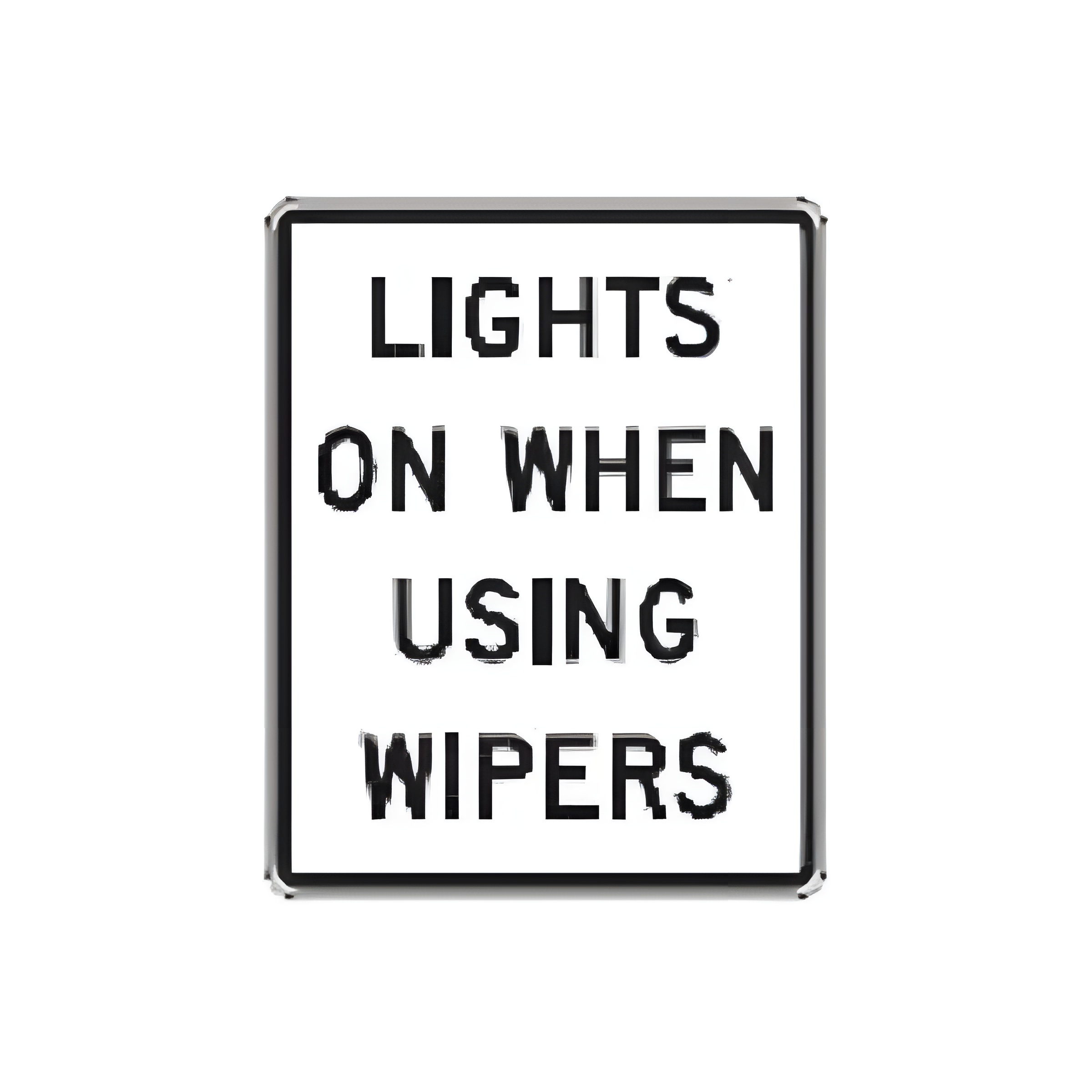 12×18-inch R16-5 LIGHTS ON WHEN USING WIPERS. (Standard Reflective on .080 gauge aluminum). Usually posted at the entrance to a state with “wipers on” laws, but also can be installed at other locations.
