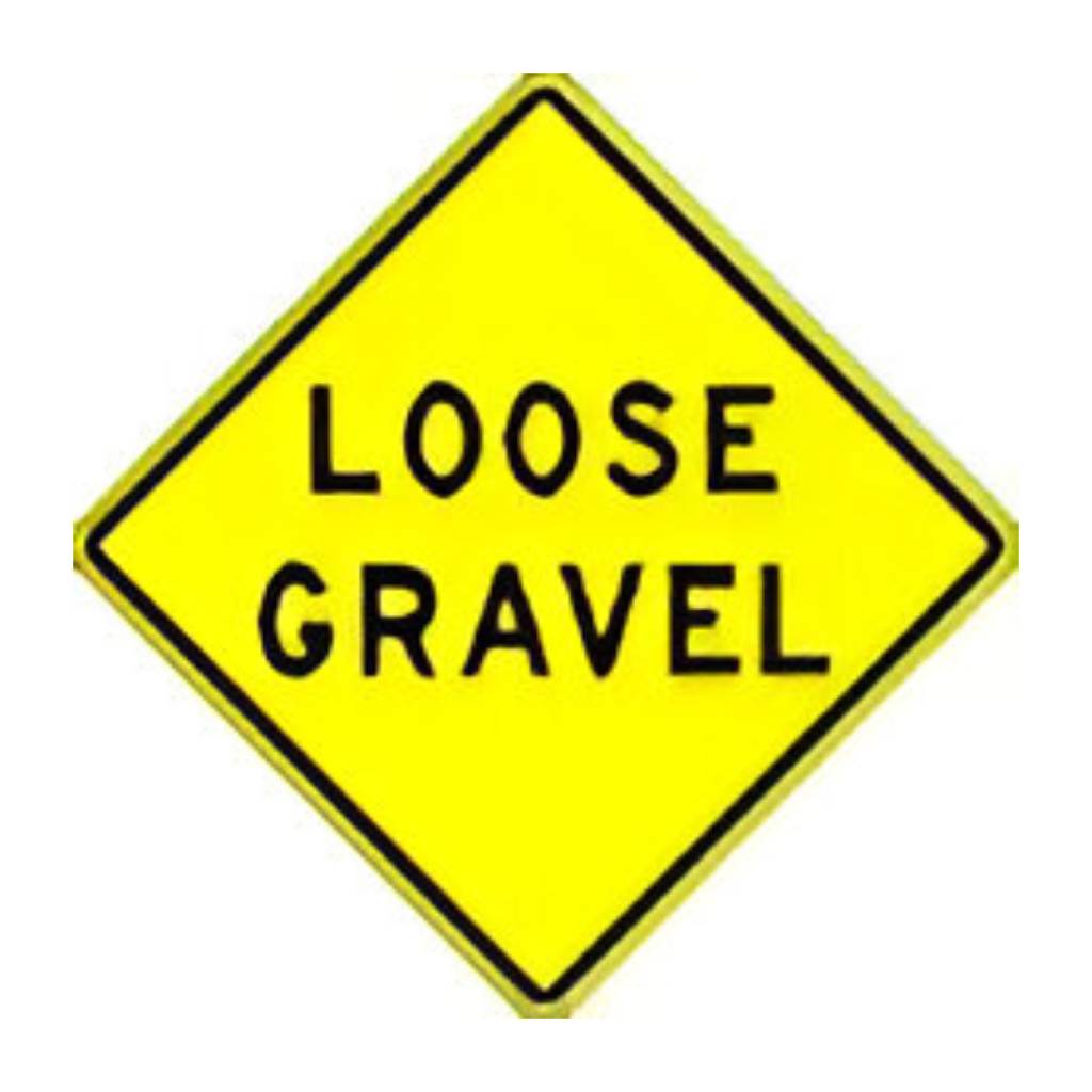W8-7 LOOSE GRAVEL. (Standard Reflective on .080 gauge aluminum). May be used to warn of loose gravel on the road.