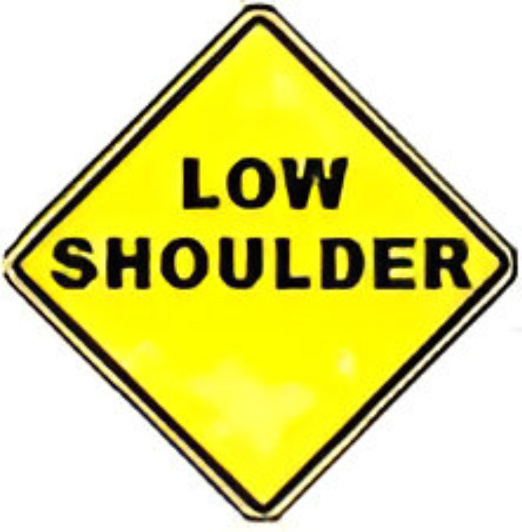 W8-9 LOW SHOULDER. (Standard Reflective on .080 gauge aluminum). May be used to warn of a difference of 3 inches or less in elevation between the road and shoulder.