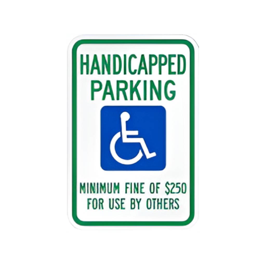 R7-8NV (Nevada handicap) RESERVED PARKING MINIMUM FINE OF $250 FOR USE BY OTHERS. (Standard Reflective on .080 gauge aluminum).
