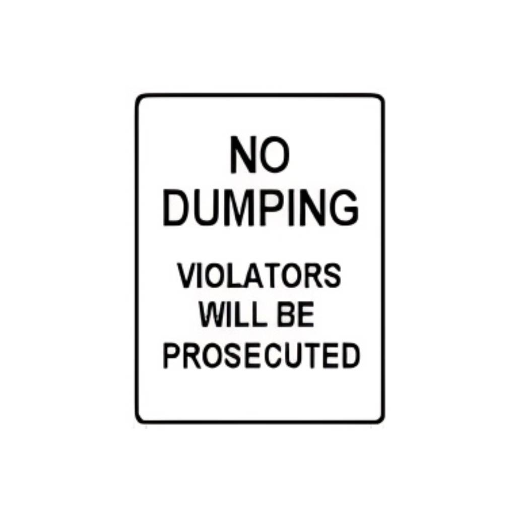 R7-123 NO DUMPING VIOLATORS WILL BE PROSECUTED. (Standard Reflective on .080 gauge aluminum).