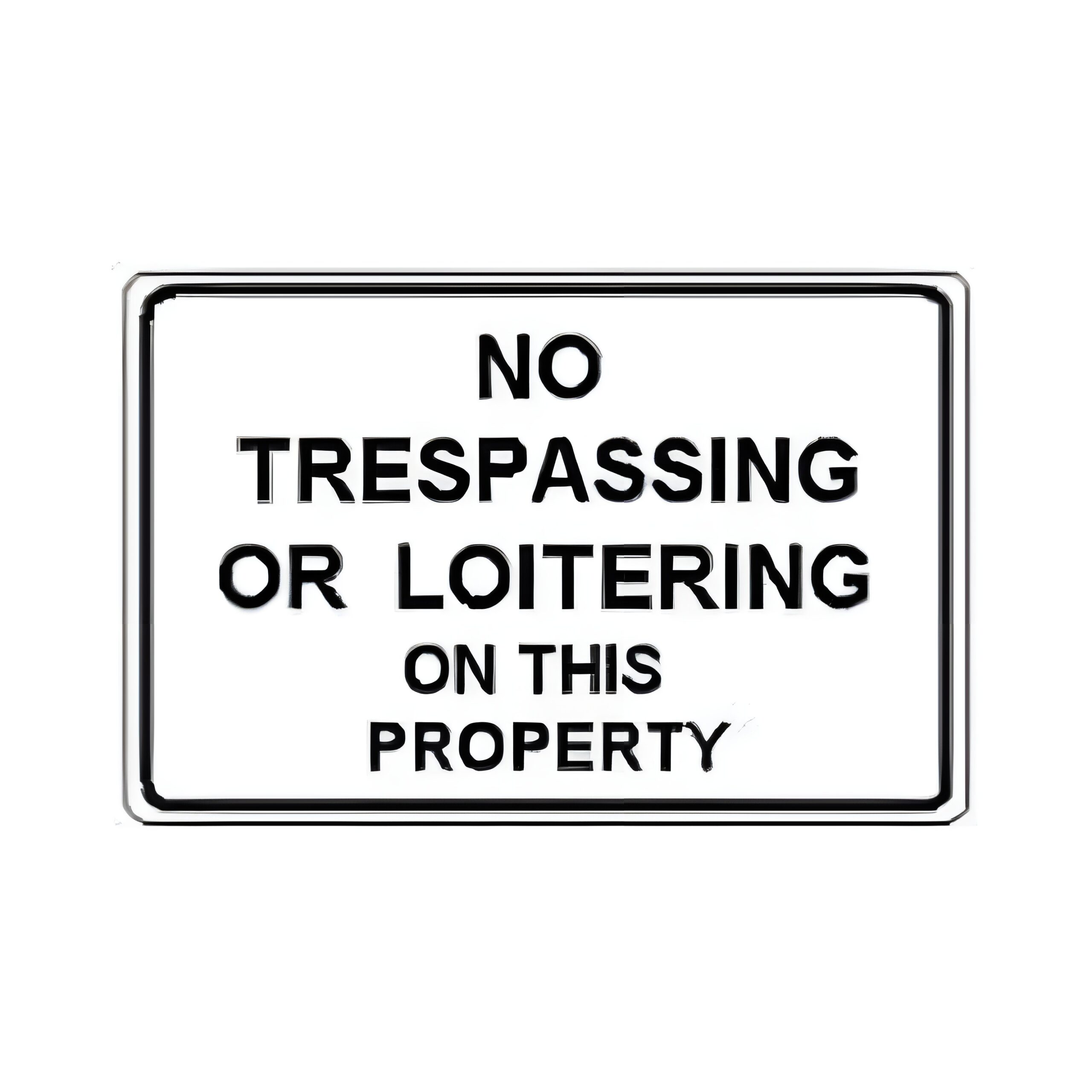 NO TRESPASSING OR LOITERING ON THIS PROPERTY (Standard Reflective on .080 gauge aluminum)