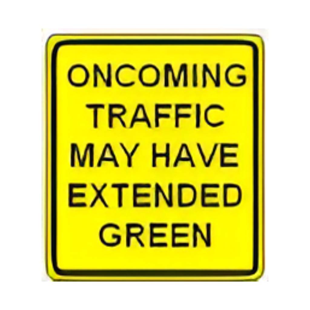 W25-2 ONCOMING TRAFFIC MAY HAVE EXTENDED GREEN. (Standard Reflective on .080 gauge aluminum).