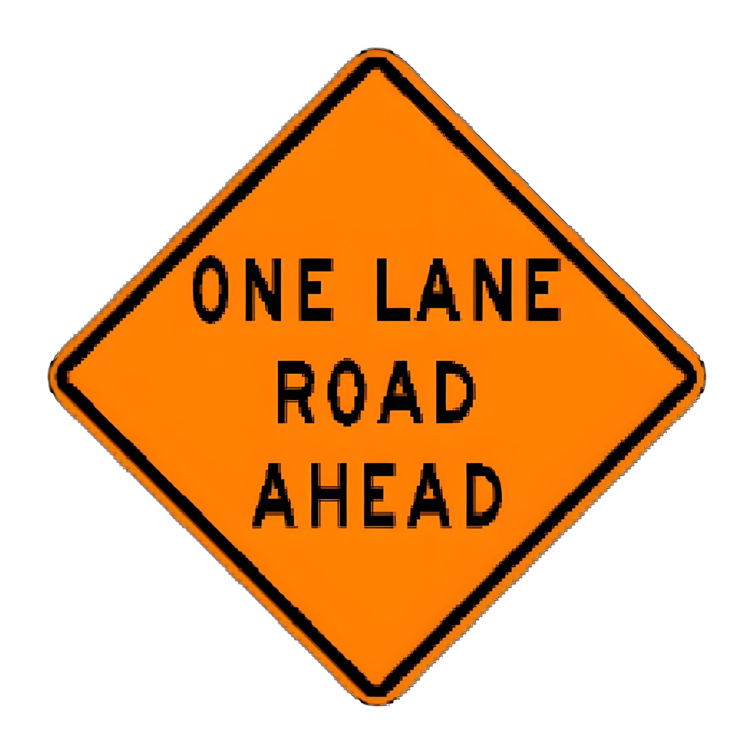 W20-4 One Lane Road Ahead on 36-inch Roll-up with heavy-duty rib supports and anti-kiting Velcro strap.