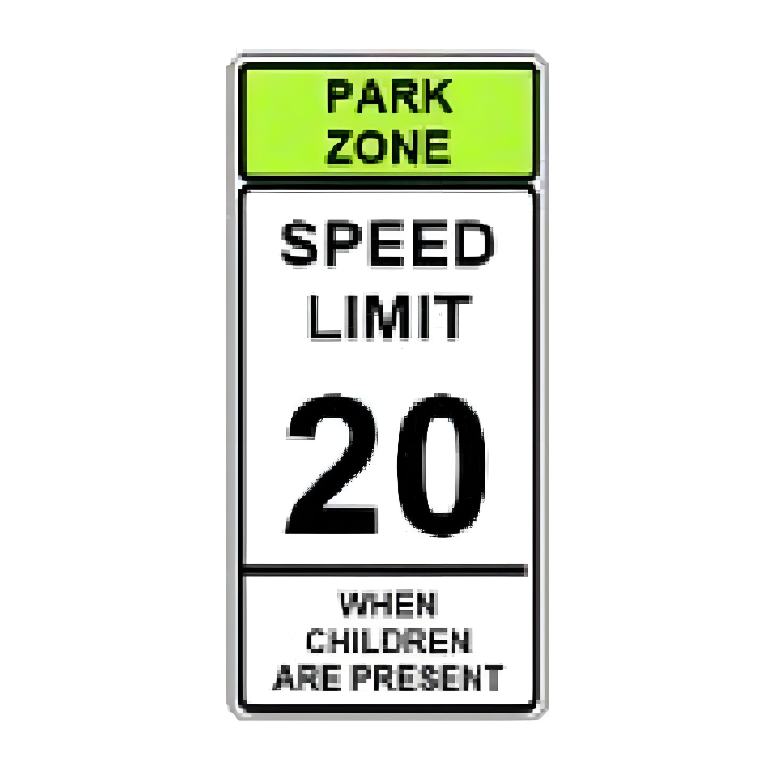 R2-I108 PARK ZONE SPEED LIMIT __ (Illinois). (Standard Reflective on .080 gauge aluminum). Park Zone color is Yellow for Standard Reflective or High Intensity Prismatic.