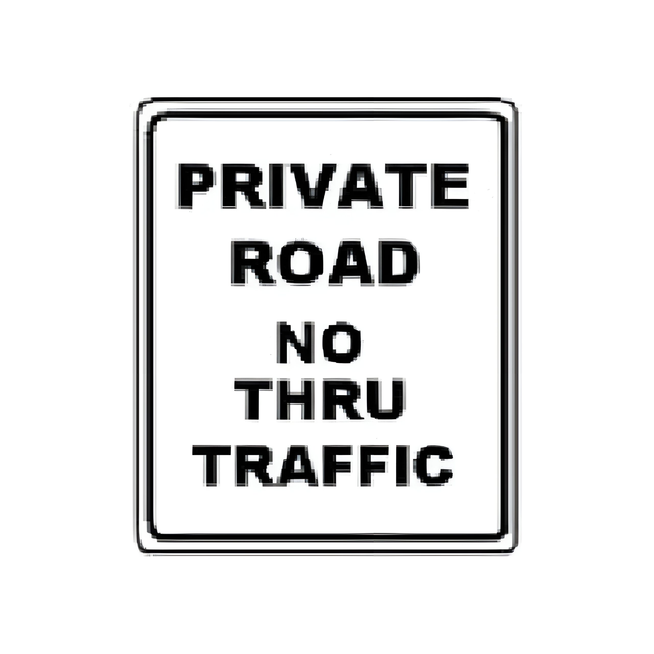 PRIVATE ROAD NO THRU TRAFFIC. (Standard Reflective on .080 gauge aluminum).