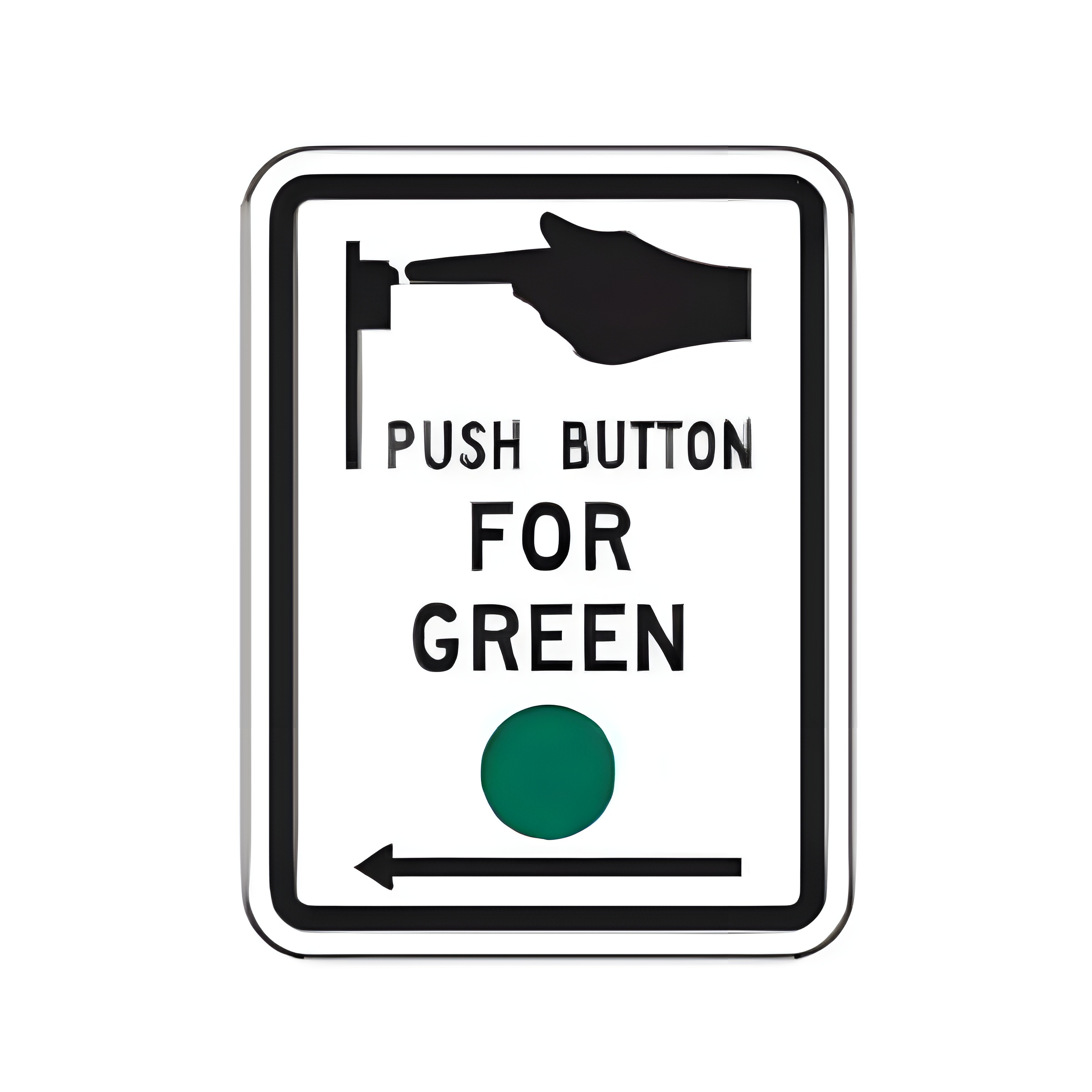9×12-inch Traffic signal actuation: PUSH BUTTON FOR GREEN. (Standard Reflective on .080 gauge aluminum). Should be mounted above or incorporated into push-button detectors.