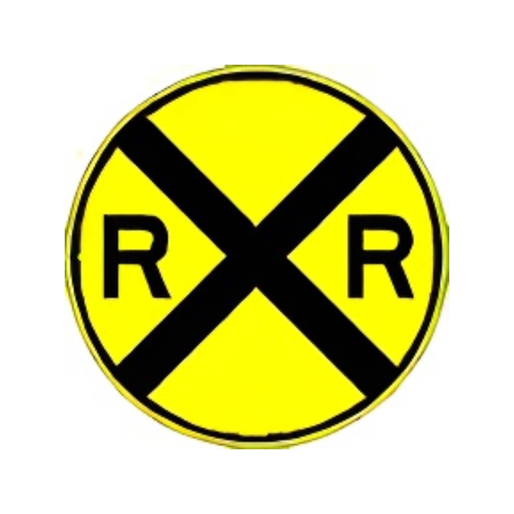 W10-1 Railroad Crossing symbol. (Standard Reflective on .080 gauge aluminum). Shall be installed in advance of every highway rail crossing, with few exceptions.