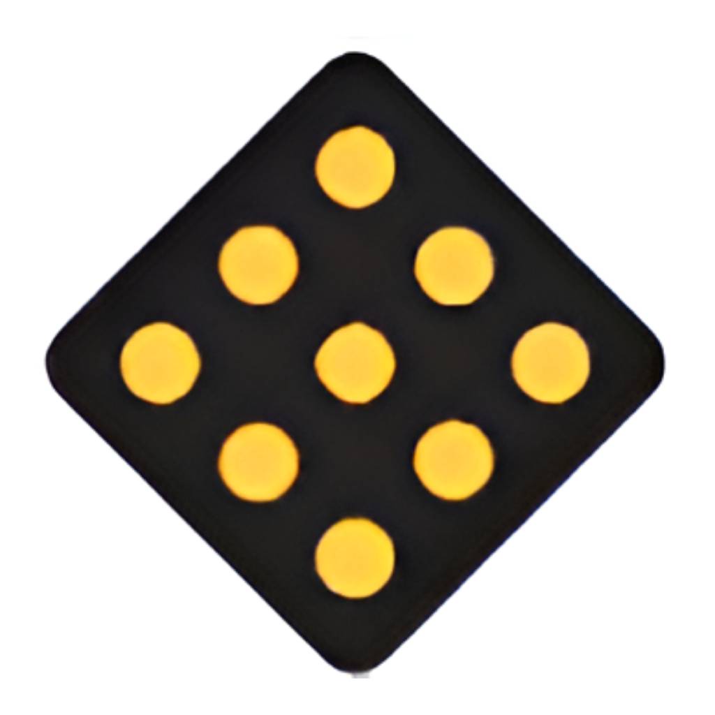 OM1-2 Object and road hazard marker with nine 3-inch Amber reflective buttons on Black background. Used to warn drivers of obstructions in road.