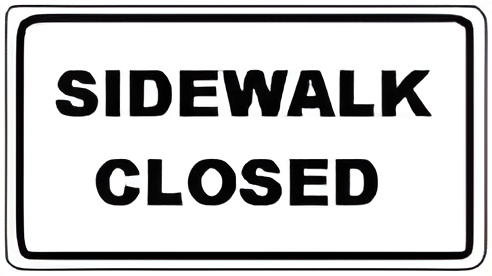 24×12-inch R9-9 SIDEWALK CLOSED. (Standard Reflective on .080 gauge aluminum). Available in 24×12-, 30×15- or 48×24-inch.