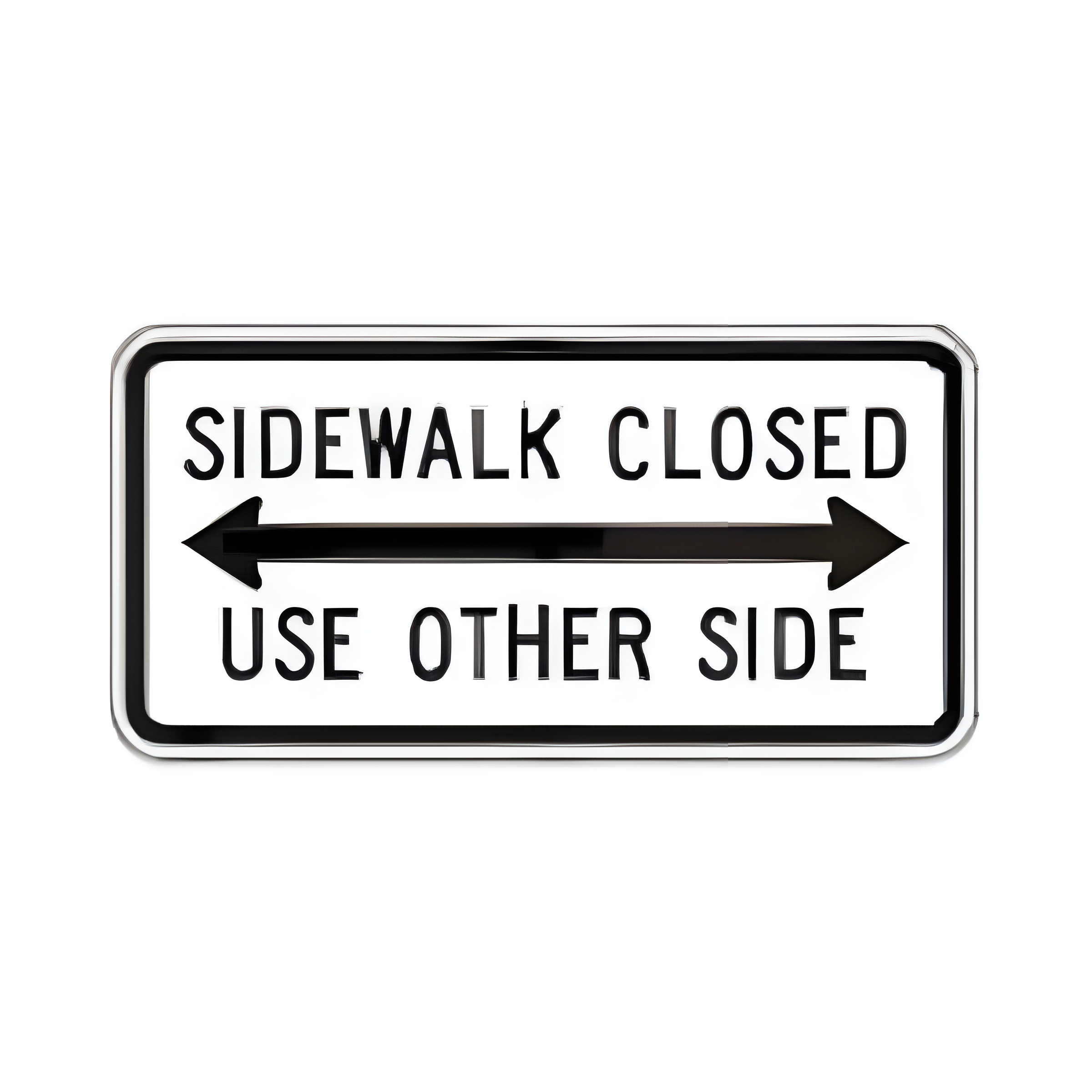 24×12-inch R9-10 SIDEWALK CLOSED (Arrow options: None, Right, Left or Double) USE OTHER SIDE (Standard Reflective on .080 gauge aluminum)