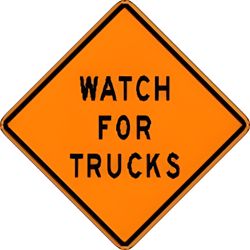 48-inch W21-9 WATCH FOR TRUCKS. (Standard Reflective on .080 gauge aluminum).