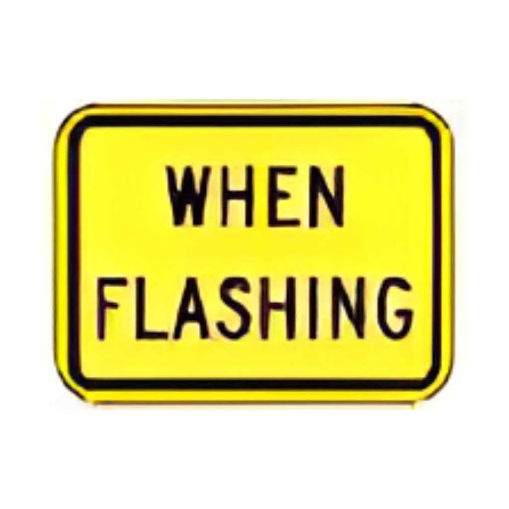 W16-13P WHEN FLASHING plate. (Standard Reflective on .080 gauge aluminum). May be posted with any warning sign equipped with a warning beacon.
